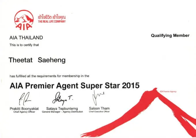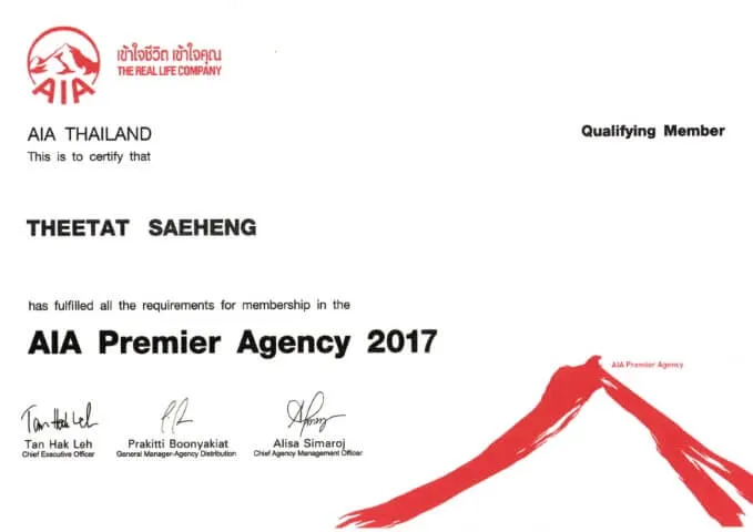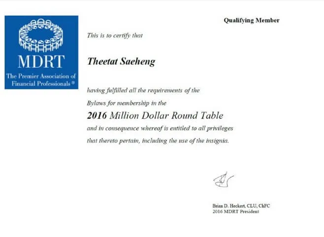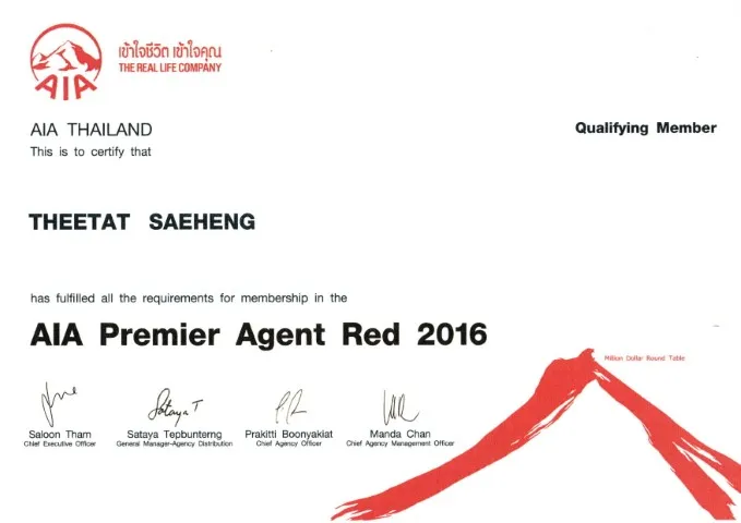 ตัวแทนประกันชีวิต AIA MDRT Life Member
